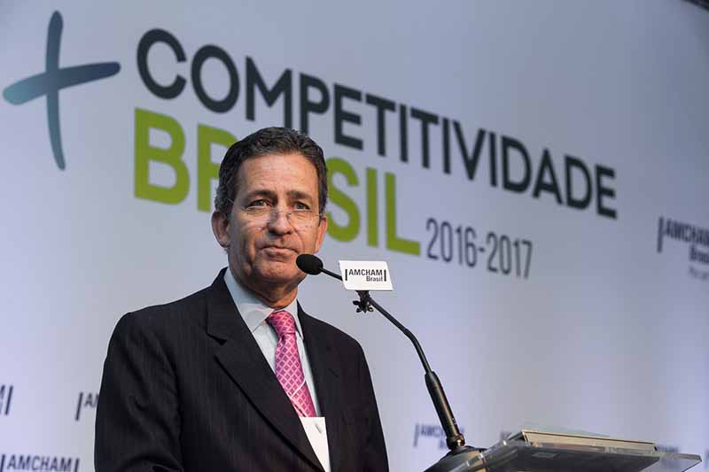 O presidente do Citi Brasil e do Conselho da Amcham, Hélio Magalhães, faz abertura do encontro apresentado o programa. A agenda do +Competitividade Brasil prevê um conjunto de ações visando à modernização da legislação trabalhista, simplificação tributária e processos de comércio exterior, acordos comerciais estratégicos, além de promoções da marca Brasil e cooperação.