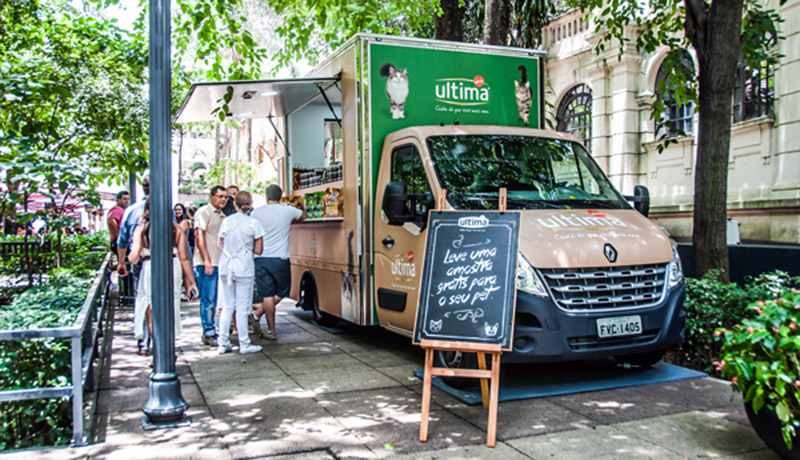 Produzido pela Truckvan, maior fabricante de unidades móveis do Brasil, o Pet Truck já distribuiu gratuitamente mais de 30 mil amostras de toda a linha em diversas ativações desde novembro do ano passado. Segundo a diretora de marketing da marca Ultima, Marina Crocomo, as ações são realizadas em lugares próximos aos pontos de venda e onde há grande incidência de cães e gatos. “Conseguimos impulsionar em 70% as vendas da marca”, explica a executiva.