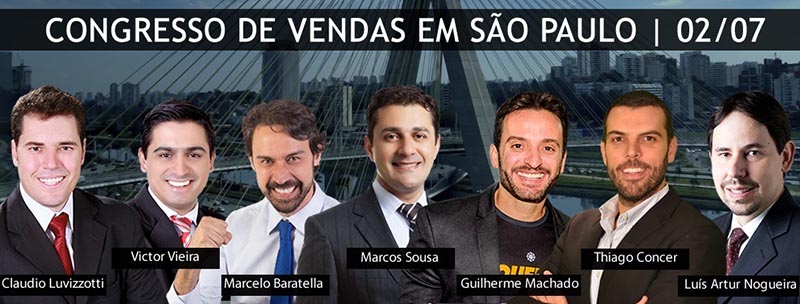 O Congresso apresenta Marcos Souza revelando “Os segredos dos vendedores extraordinários”; Claudio Luvizzotti com a apresentação de “Conquiste a mente e o coração do seu cliente”; Luís Arthur Nogueira revelando “A Crise sem Economês: Desafios e Oportunidade$”; Thiago Concer mostrando “O Atendimento que vende”; Victor Vieira em “Como se tornar um especialista em vendas”; Marcelo Baratella com “As 5 armas letais para uma negociação ter sucesso” e Guilherme Machado respondendo a questão “O que motiva as pessoas?”.